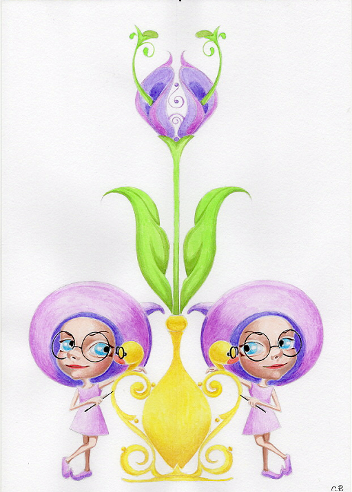 This unique illustration, titled “Botanical Curiosity,” brings together two retro-styled girls with lavender hair and an imaginative fantasy flower, all framed by a golden ornamental vase. The vivid colors and quirky characters invite you to experience the joyful meeting point of nature and creativity. It’s a print full of playful detail, perfect for adding a burst of personality to any space.